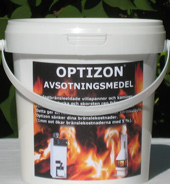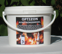 OPTIZON är ett sotningsmedel baserat på Nitro Nobels grundrecept. Fungerar i alla fastbränsleeldade villapannor och kaminer. Medlet består huvudsakligen av alkalinitrater, nitriter och Mg. Vid upphettning av additivet sker en långsam sönderdelning. När temperaturen stegras antänds additivet och bildar en gråaktig dimma bestående av små ”kristaller? Dessa kristaller har egenskapen att efter en viss tid omsätta sig med sura eller omättade beståndsdelar i sotskiktet på alla rökgasberörda ytor i pannan eller kaminen, och omvandlar i första hand svavelsyra och svaveldioxid till sulfater.